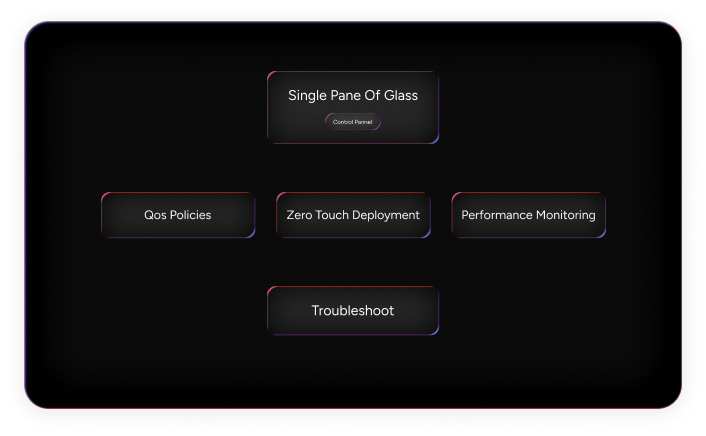 Easily configure and manage the entire WAN fabric from a single pane of glass. Define QoS policies, deploy zero-touch sites, monitor performance, and troubleshoot issues — all in real time.